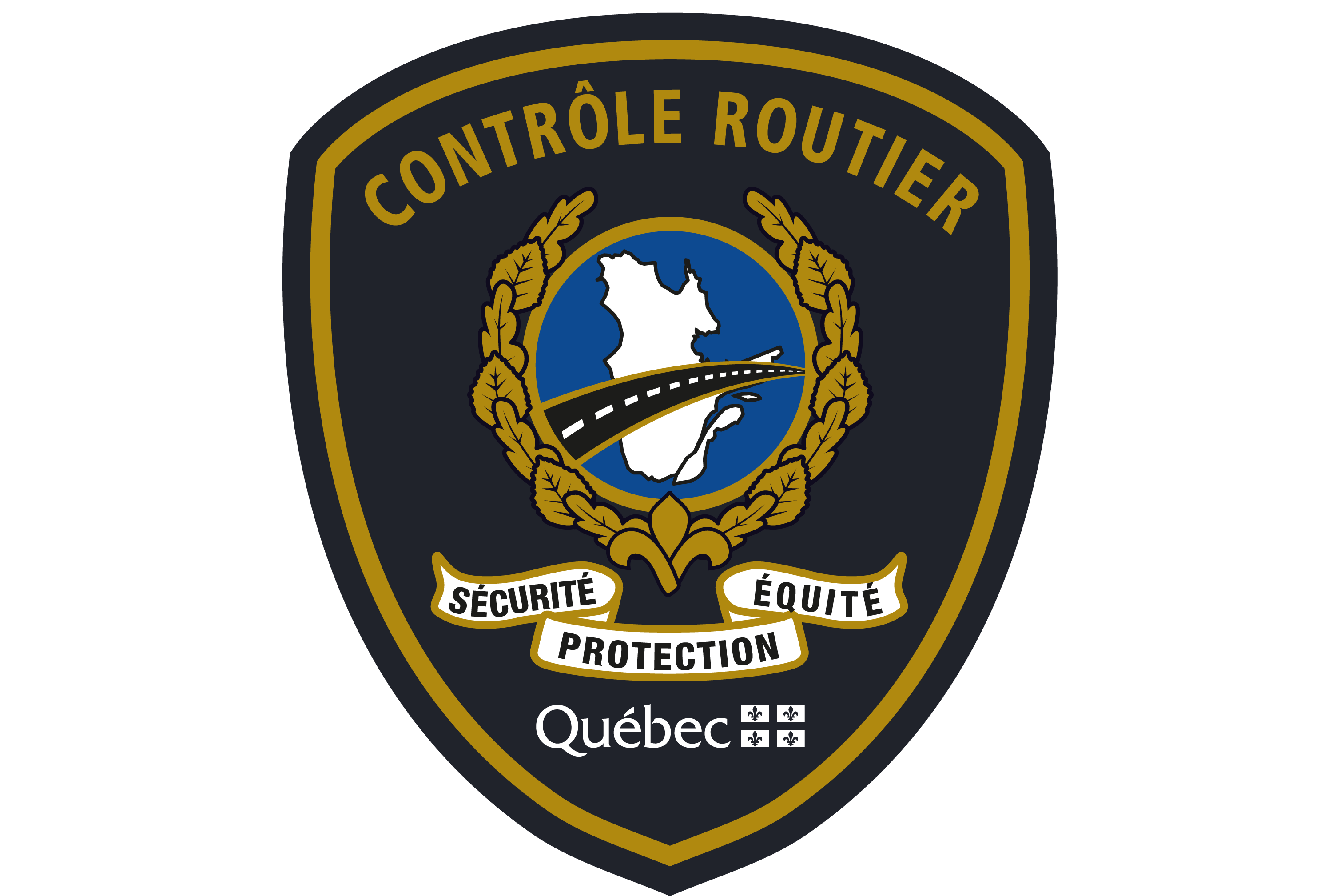 L'écusson qui orne les uniformes de nos contrôleurs routiers arbore notre couleur officielle, nos armoiries ainsi que notre devise : « Sécurité, protection, équité ».