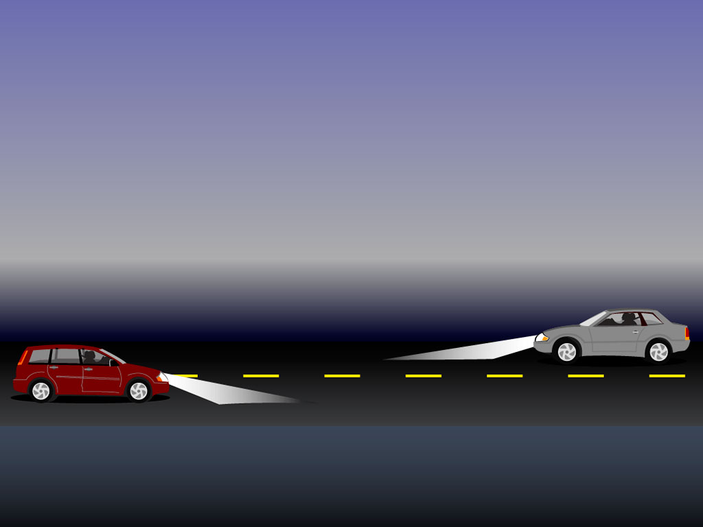 Quand devez-vous utiliser les feux de croisement (« les basses »)? 1- Sur des routes munies d’un éclairage continu. 2- Quand la visibilité est réduite par la pluie ou la neige. 3- Quand la visibilité est réduite par le brouillard. 4- Quand vous suivez un véhicule.