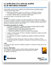 ![]() | La vérification d’un véhicule modifié ou de fabrication artisanale (PDF, 67.0 KB) 1 page (C-5381-2) Cette lettre doit être remise au propriétaire d'un véhicule qui n'a pas obtenu l'approbation de la Société avant de modifier son véhicule. Elle explique que le mandataire en vérification de véhicules routiers doit produire un rapport sur les modifications avant de faire la vérification mécanique. |