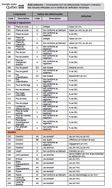 ![]() | Nature des défectuosités (PDF, 91.7 KB) 1 page (7108 20) Ce formulaire décrit la nature des défectuosités et précise les codes à utiliser sur le certificat de vérification mécanique. |