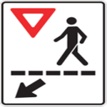 - Indicates the presence of a pedestrian crosswalk. You must yield the right of way to any pedestrians who have stepped into the crosswalk.