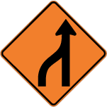 - Indicates that you must yield the right of way to vehicles already travelling in the lane.