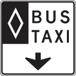- Indicates that a lane is reserved for certain types of vehicles (buses, taxis).