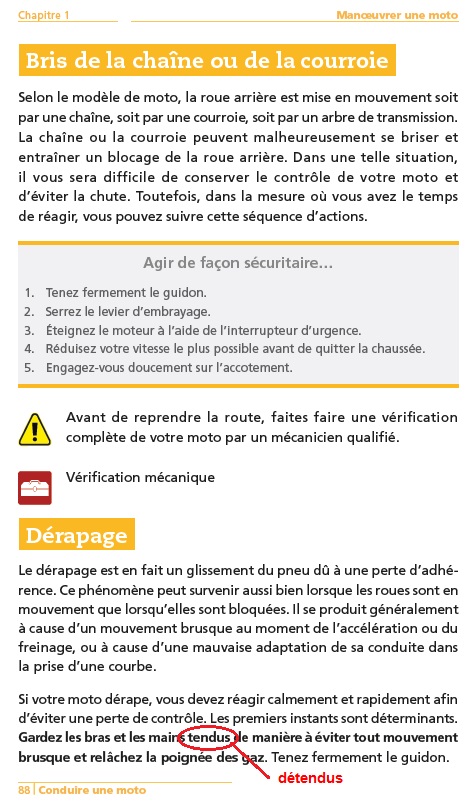 Des erreurs se sont malencontreusement glissées dans la deuxième édition du guide Conduire une moto, publiée en mars 2016. Les corrections concernent uniquement la version imprimée du guide, la version PDF en ligne ayant déjà été mise à jour.