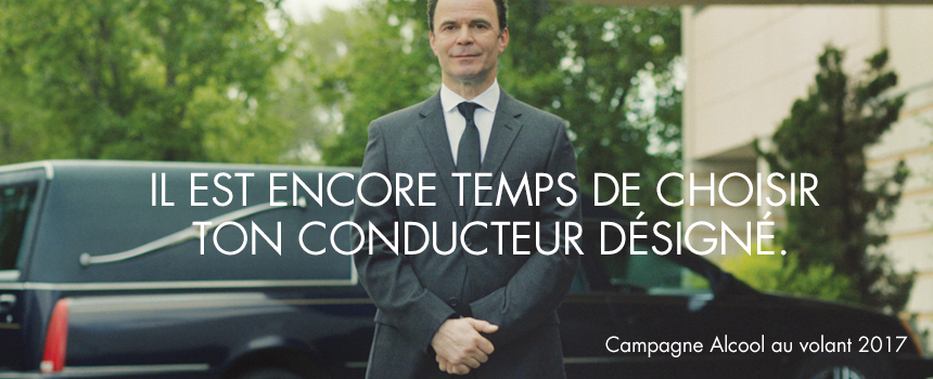 La campagne 2017 de la SAAQ – « Il est encore temps de choisir ton conducteur désigné » – s’adresse principalement aux conducteurs de 16 à 24 ans. Elle rappelle l’importance de prévoir un conducteur désigné avant une sortie.