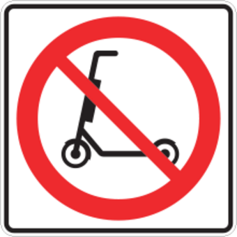 Dans le cadre du projet pilote, la personne responsable de l’entretien d’un chemin public peut, au moyen de la signalisation ci-dessous, interdire la circulation des appareils de transport personnel motorisés sur une voie cyclable ou un chemin public.