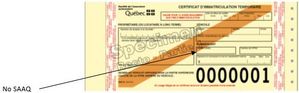 Demander aux personnes chargées de la délivrance des constats d’inscrire sur celui-ci le numéro SAAQ écrit sur le certificat temporaire. Ensuite, il suffit d’inscrire ce numéro avec le préfixe 11 (personnes morales), 22 (entreprises individuelles) ou 33 (sociétés de personnes, associations et autres groupements au Registre des entreprises du Québec).